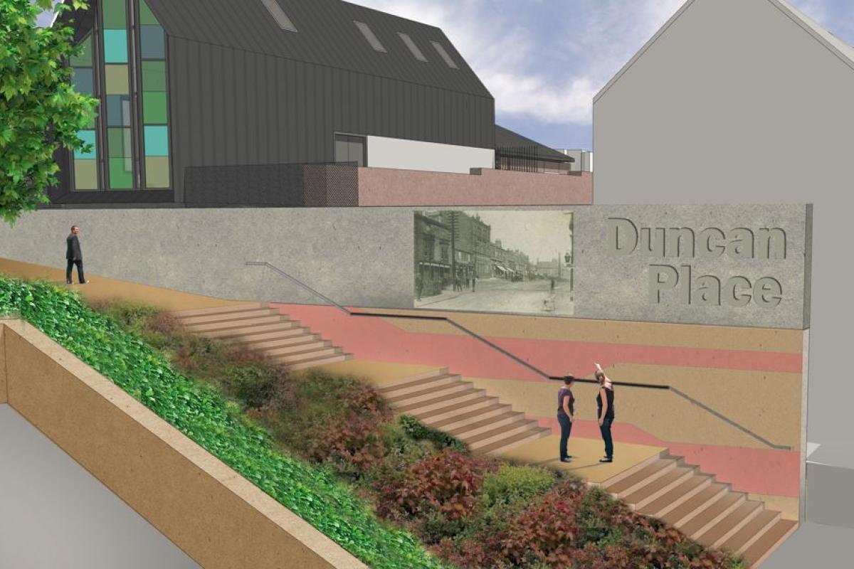 It will create access to the new Duncan Place community hub and new library building via a tree-lined boulevard and new steps from Zetland Road, as well as create a new memorial garden with rose planting to reflect the original central feature of the park.